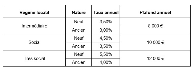 Tableau 1 – Le dispositif Jeanbrun : taux et plafonds
